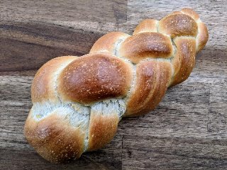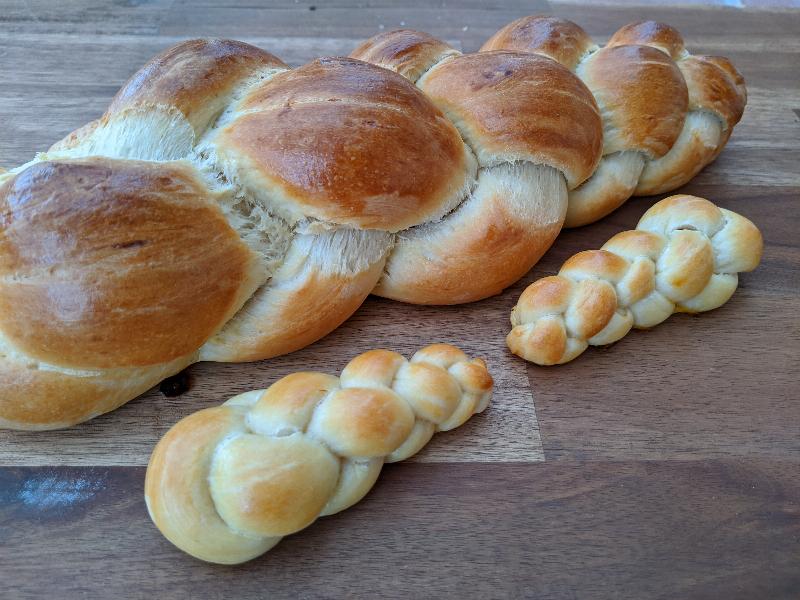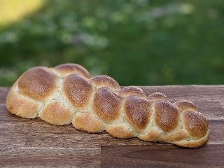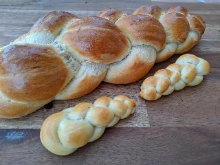 Den Teig über Nacht auf die doppelte Grösse aufgehen lassen. In 2 gleich grosse Stücke teilen. Stränge formen und flechten.